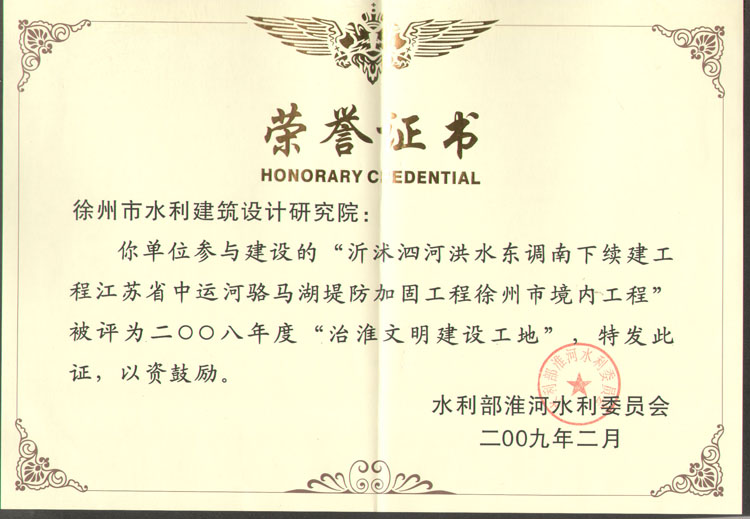 2008年度治淮文明工地(駱馬湖堤防加固工程)