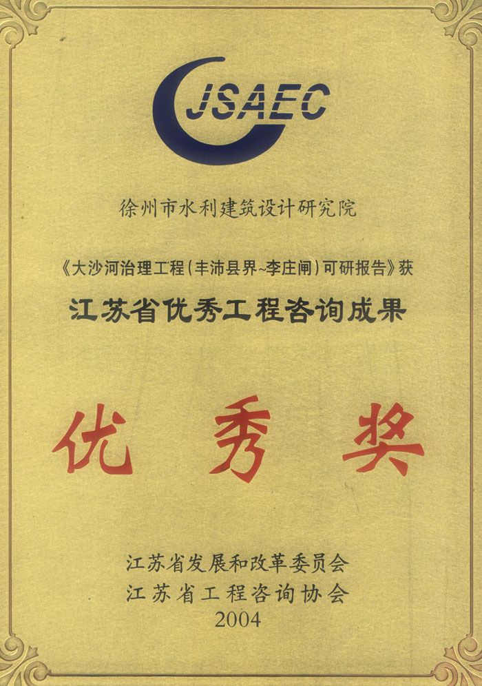 《大沙河治理工程可研》省咨詢(xún)成果獎(2004)